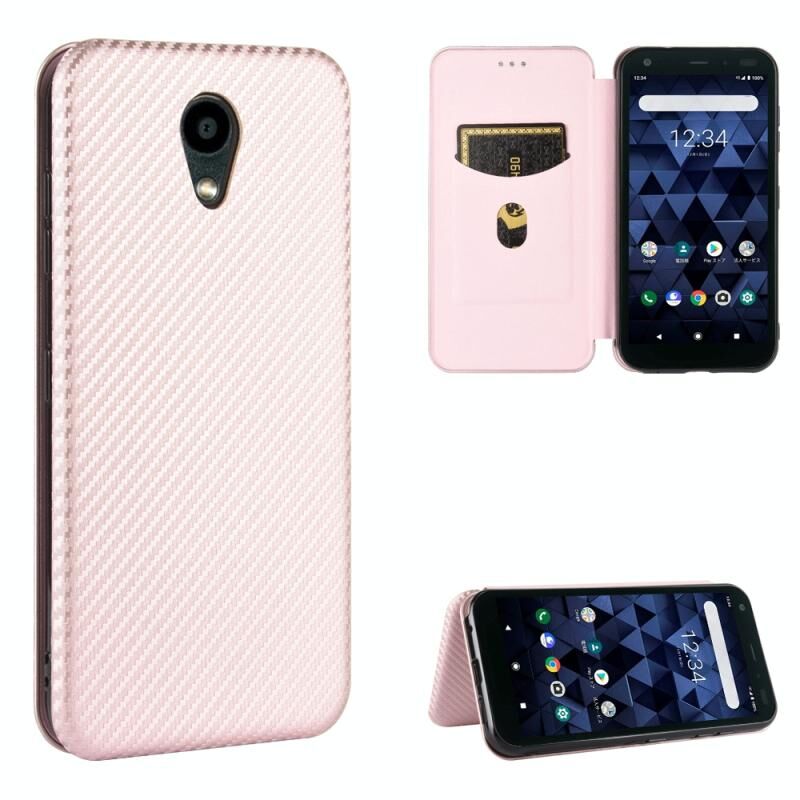 Για Kyocera DIGNO BX Carbon Fiber Texture Οριζόντια Flip TPU + PC + PU δέρμα υπόθεση με υποδοχή κάρτας (ροζ)
