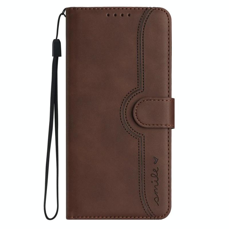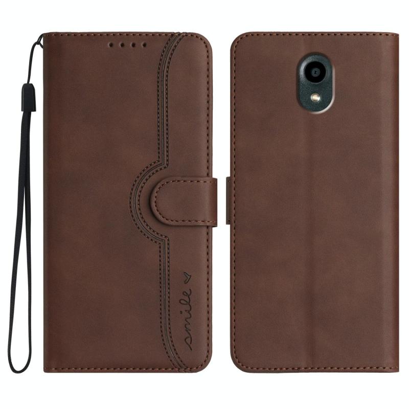 For Kyocera DIGNO BX Heart Pattern Skin Feel Leather Phone Case(Brown)