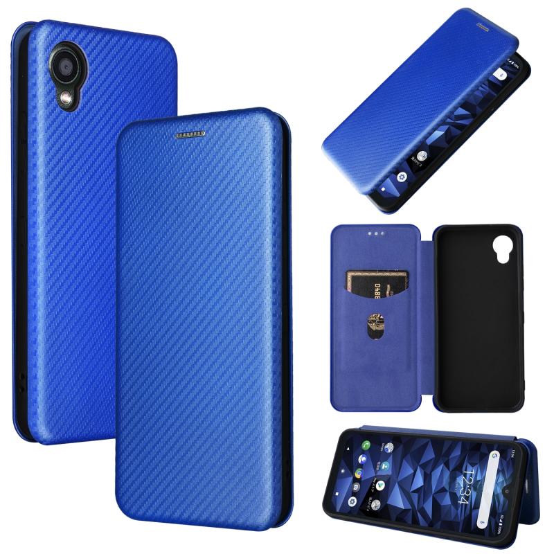 Θήκη τηλεφώνου Kyocera DIGNO BX2 από ανθρακονήματα με υφή, οριζόντια, από PU δέρμα (Μπλε)