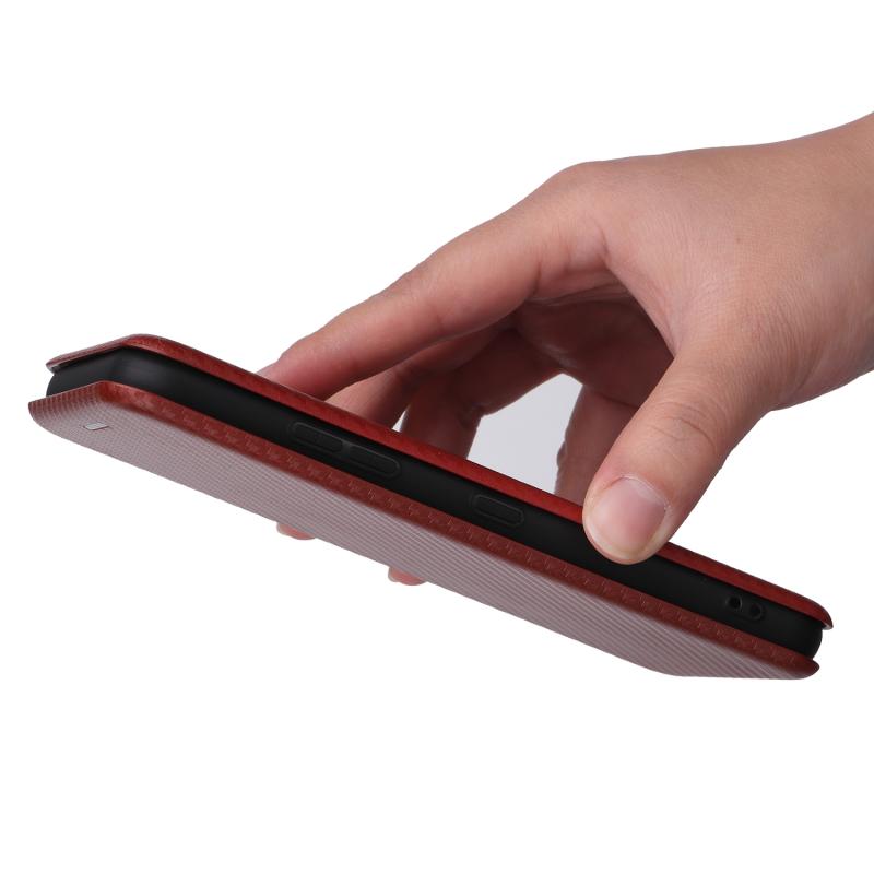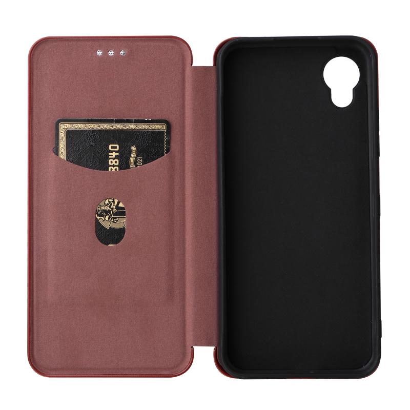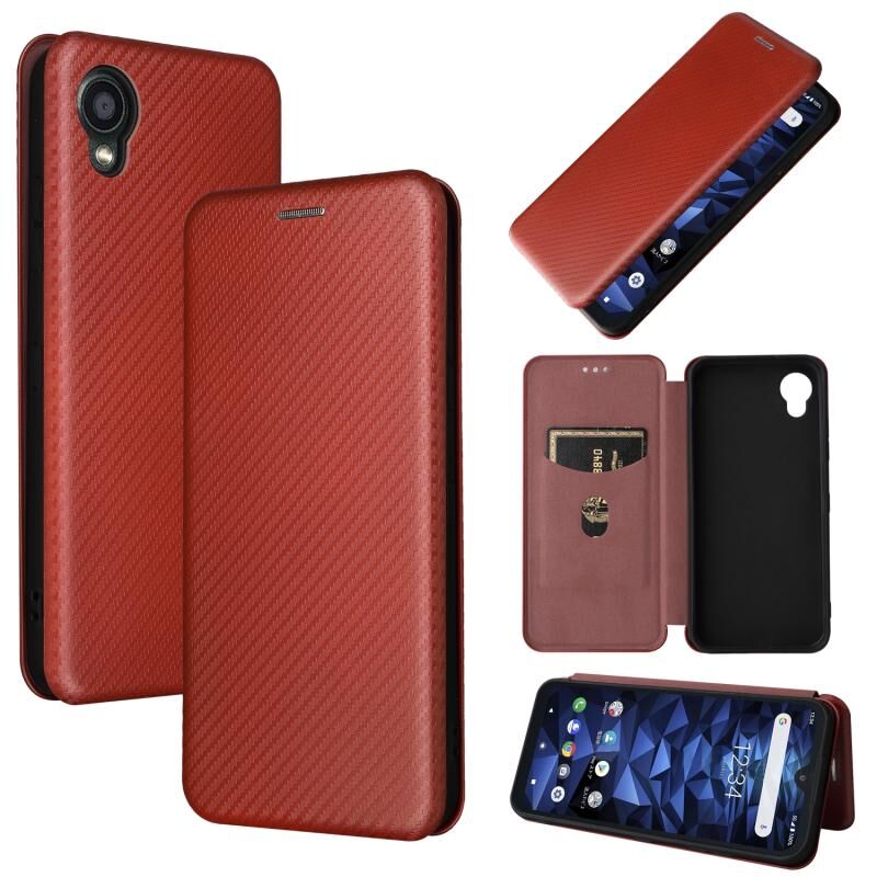 Θήκη τηλεφώνου Kyocera DIGNO BX2 από ανθρακονήματα με υφή, οριζόντια, από PU δέρμα (Καφέ)