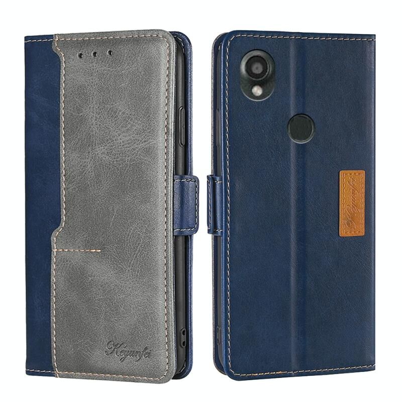 Για Kyocera Digno SX3-KYG02 αντίθεση χρώμα πλευρά πόρπη δερμάτινη θήκη τηλεφώνου (μπλε + γκρι)