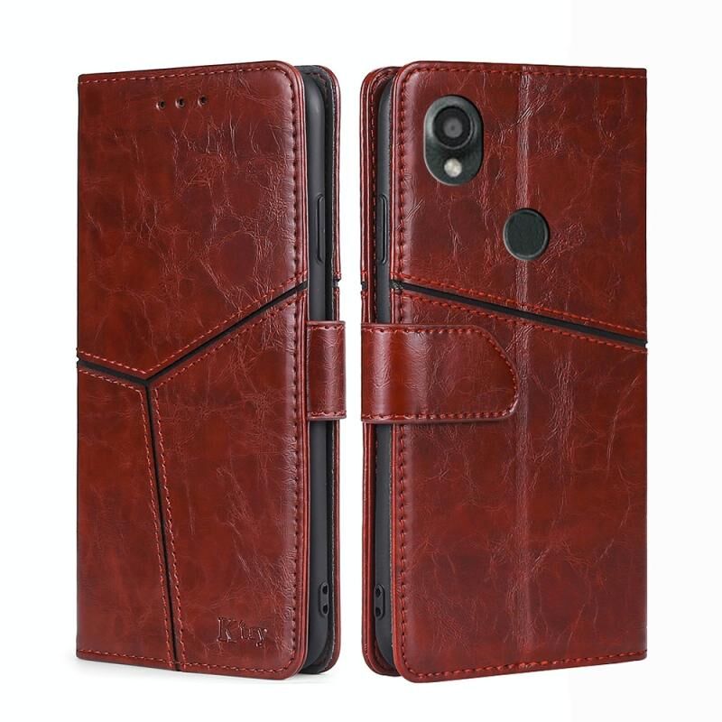 Για Kyocera Digno SX3-KYG02 γεωμετρική ραφή δερμάτινη θήκη τηλεφώνου (σκούρο καφέ)