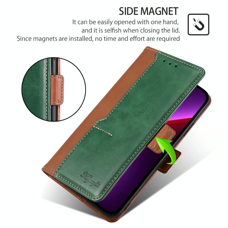 Για Kyocera Digno SX4 5G αντίθεση χρώμα πλευρά πόρπη δερμάτινη θήκη τηλεφώνου (ανοιχτό καφέ + πράσινο)