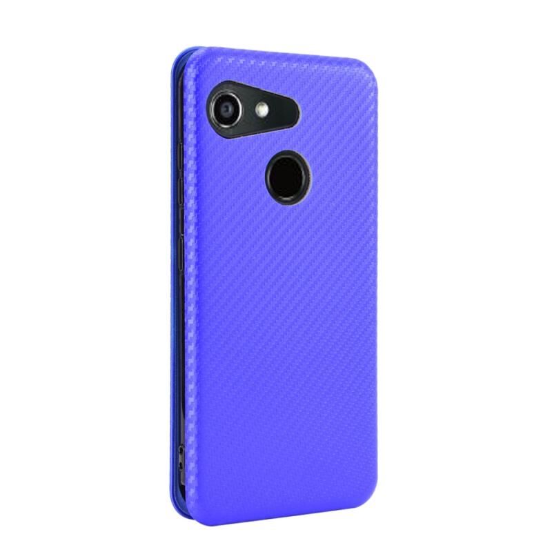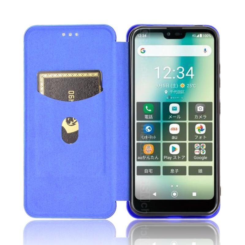 Θήκη για Kyocera Gratina KYV48 με υφή ανθρακονήματος, οριζόντια, από TPU + PC + Δερματίνη PU με θήκη για κάρτες (Μπλε)