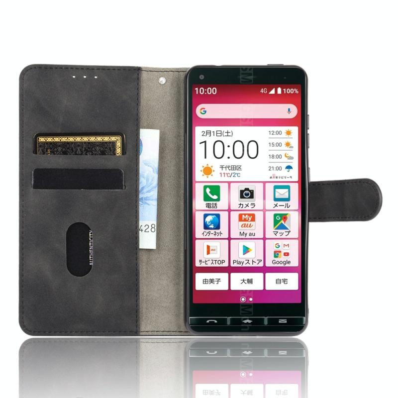 For Kyocera Kantan Sumaho 2 (A001KC) Solid Color Skin Feel Magnetic Buckle Horizontal Flip Calf Texture PU Leather Case with Holder & Card Slots & Wallet(Black)