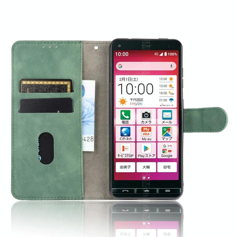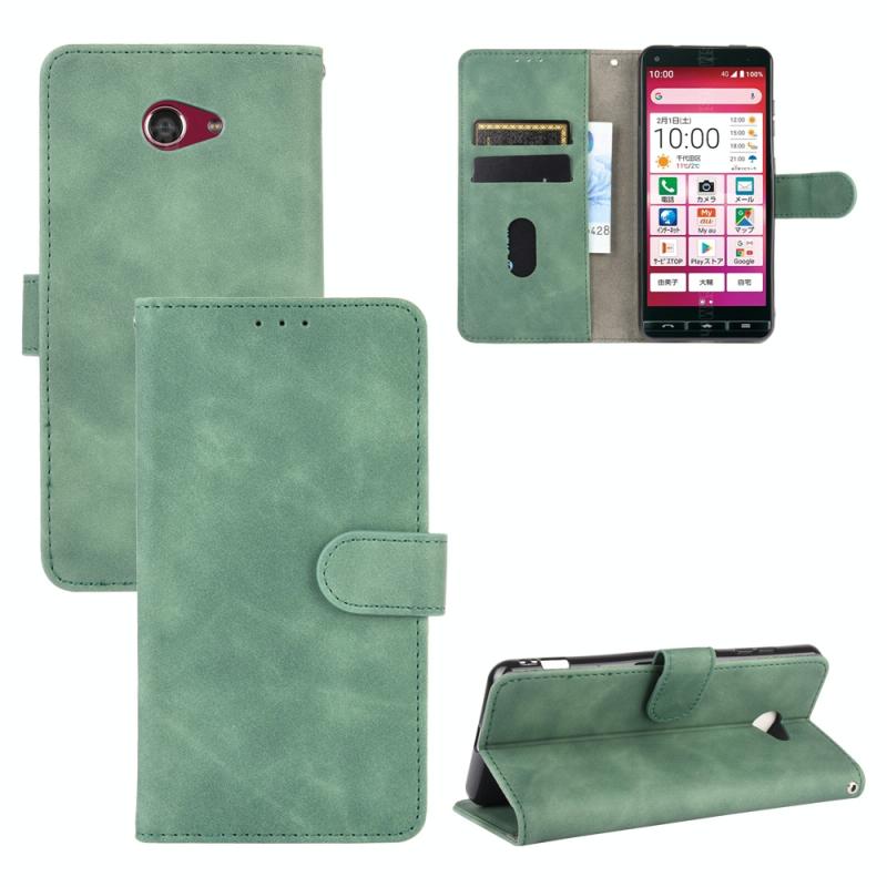 For Kyocera Kantan Sumaho 2 (A001KC) Solid Color Skin Feel Magnetic Buckle Horizontal Flip Calf Texture PU Leather Case with Holder & Card Slots & Wallet(Green)