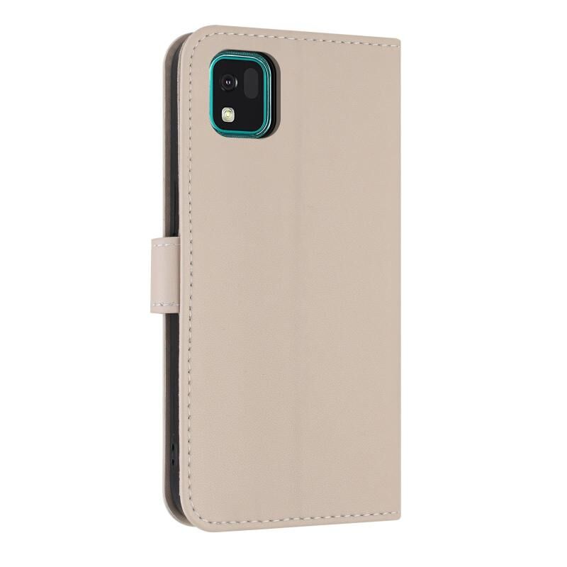 For Kyocera Kantan Sumaho3 A205KC Metal Bow Leather Phone Case with Hand Strap(Apricot)