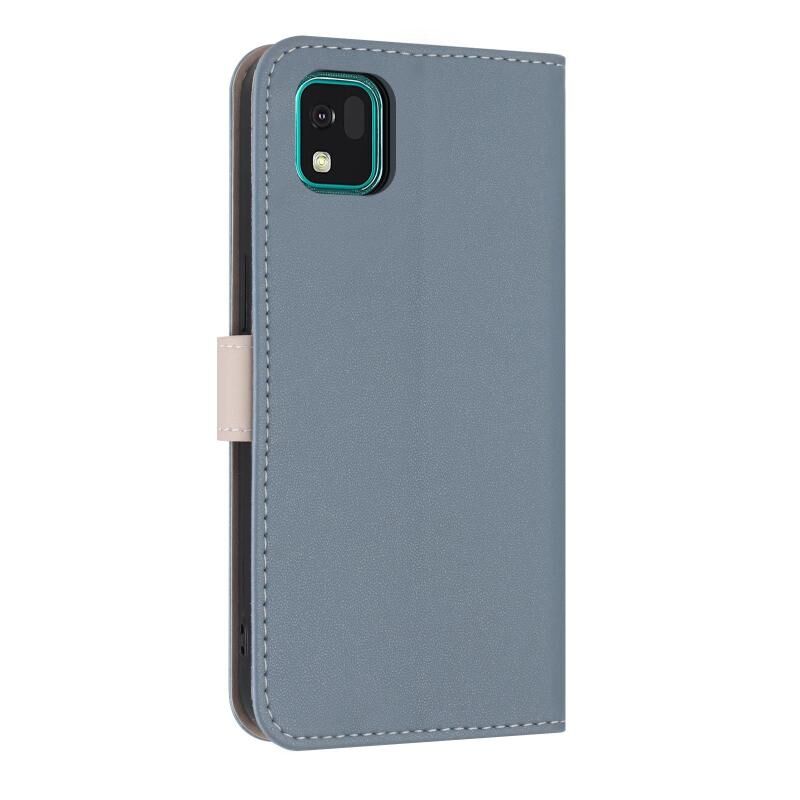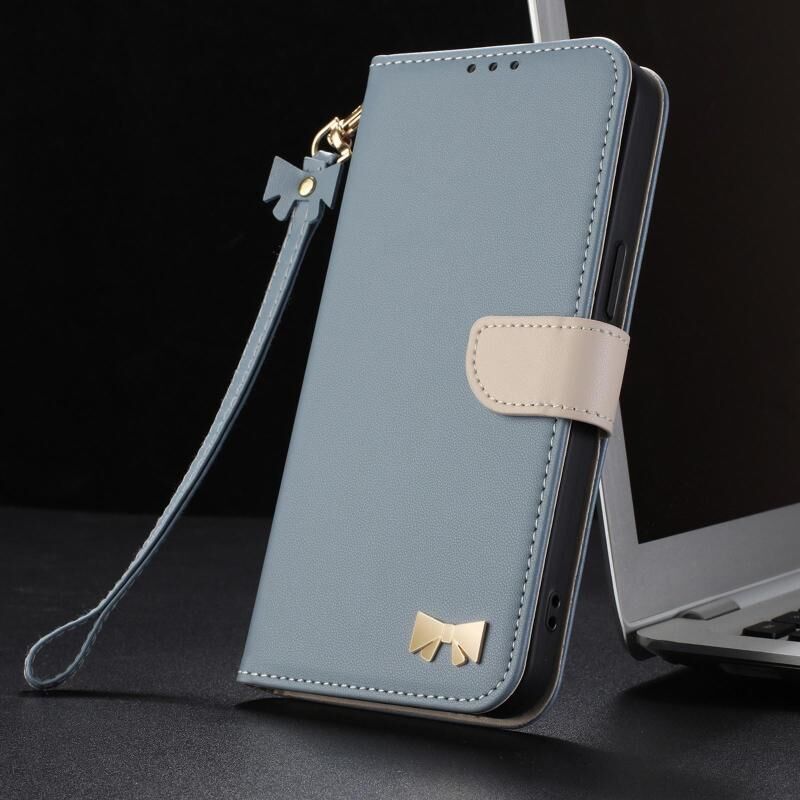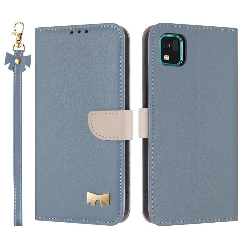 For Kyocera Kantan Sumaho3 A205KC Metal Bow Leather Phone Case with Hand Strap(Light Blue)