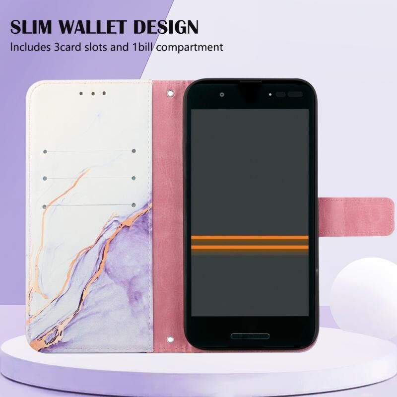Θήκη τηλεφώνου από δέρμα με σχέδιο μάρμαρου για Kyocera Qua Phone QX KYV42 PT003 (Ροζ Μωβ Χρυσό LS001)