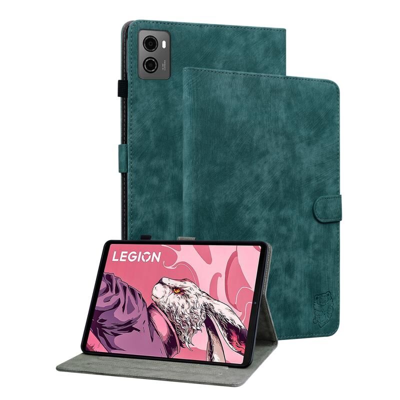 Για Lenovo Legion Y700 2023 Tiger Pattern Flip δερμάτινη θήκη tablet (σκούρο πράσινο)