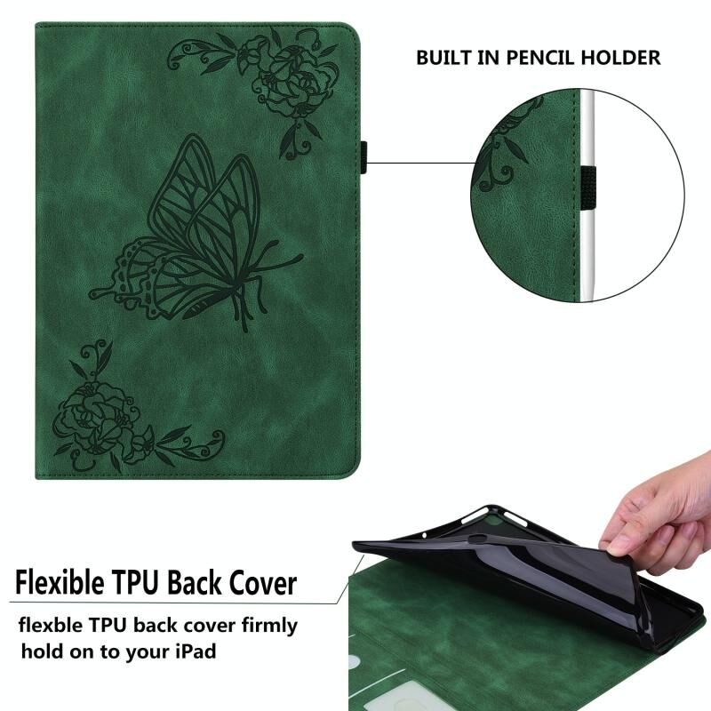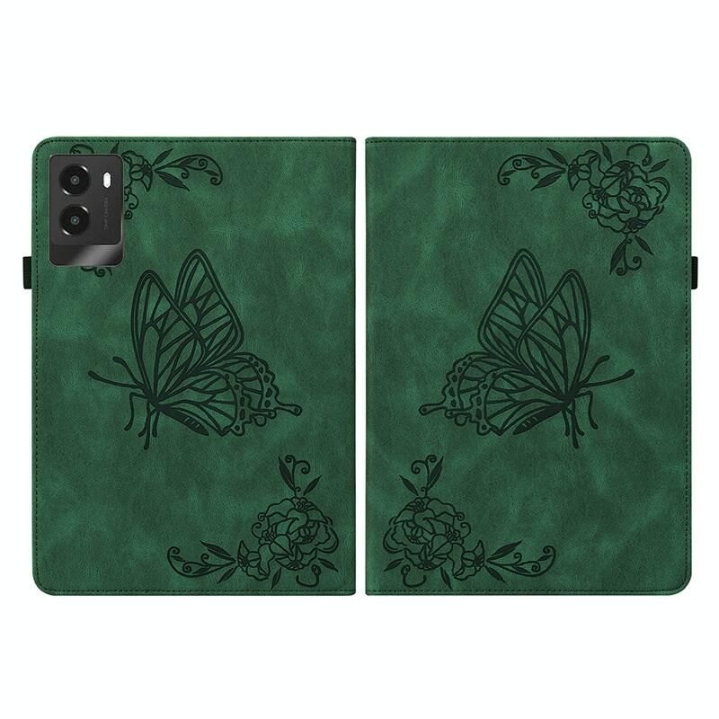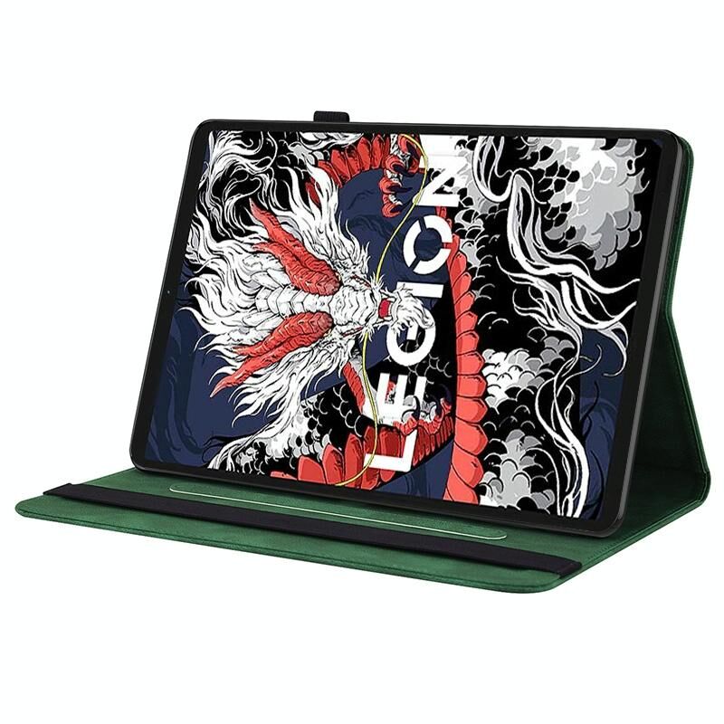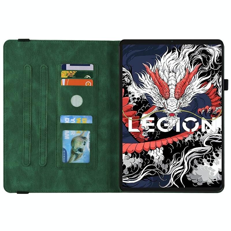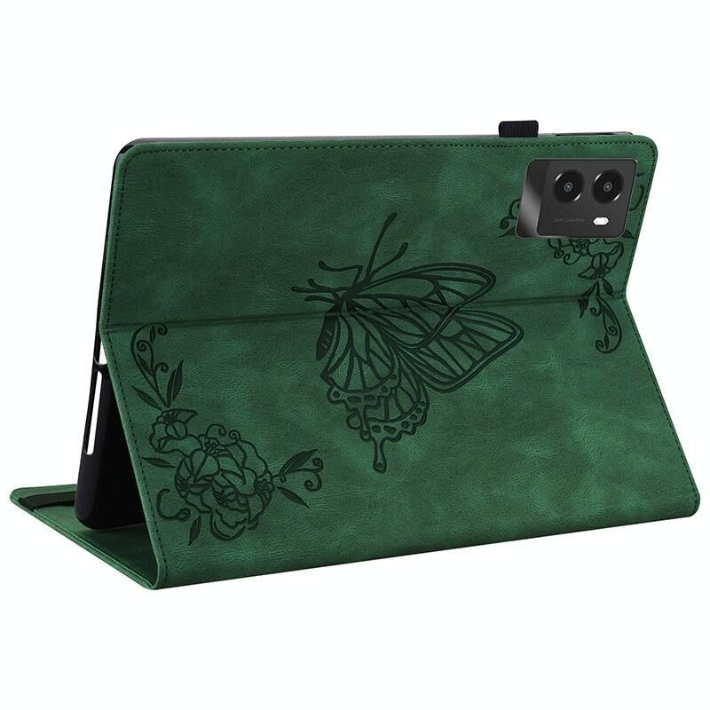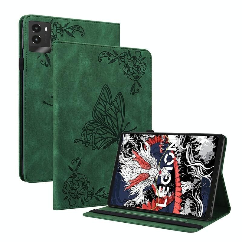 Θήκη ταμπλέτας Lenovo Legion Y700 2025 με ανάγλυφο σχέδιο πεταλούδας και λουλουδιών από δέρμα (Πράσινο)