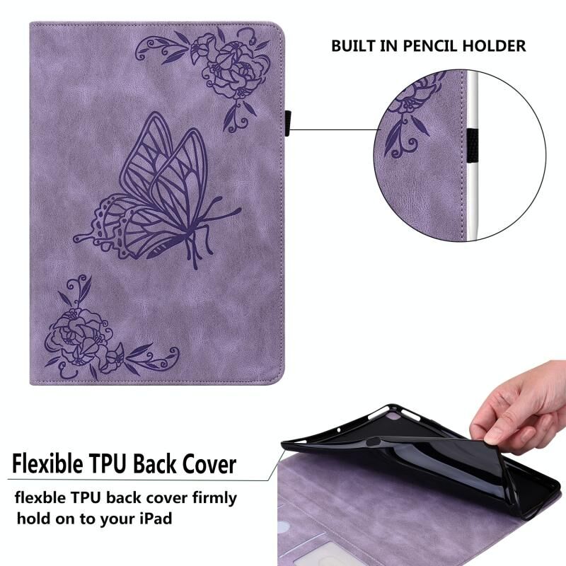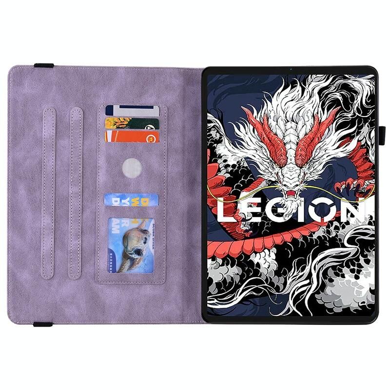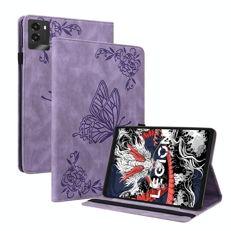Θήκη ταμπλέτας Lenovo Legion Y700 2025 με ανάγλυφο σχέδιο πεταλούδας και λουλουδιών από δέρμα (Πράσινο)