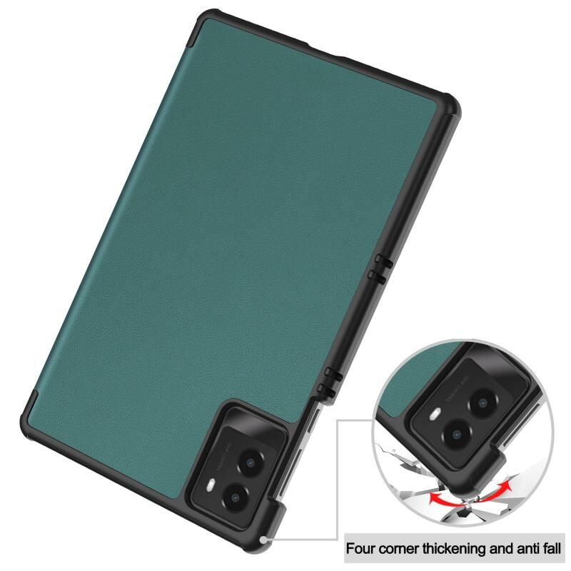For Lenovo Legion Y700 2025 Custer Texture 3-Fold Holder Leather Smart Tablet Case(Dark Green)
