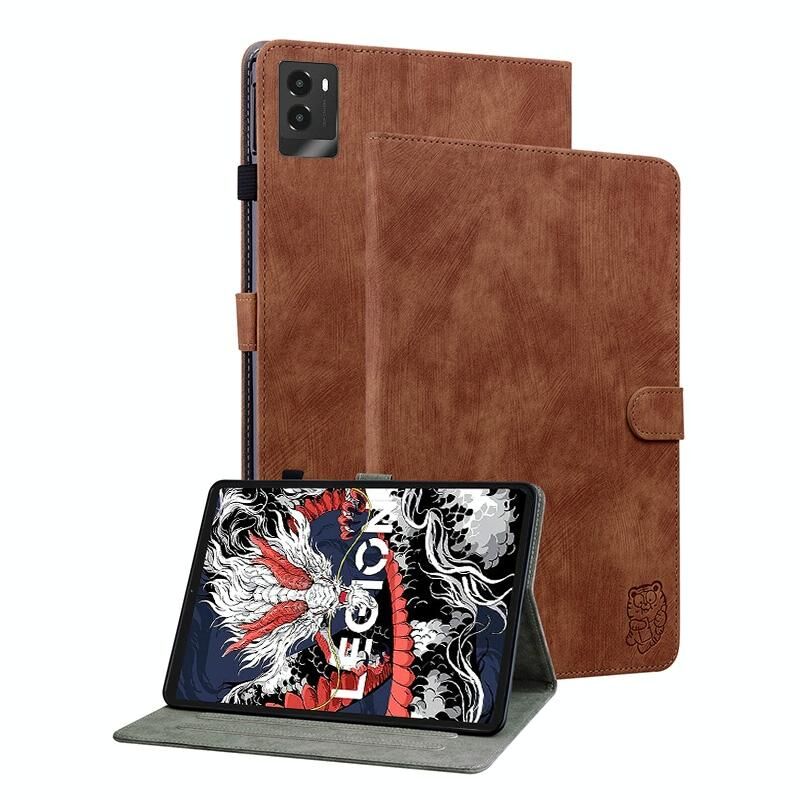 Θήκη δερμάτινη με σχέδιο τίγρης, τύπου flip, για Lenovo Legion Y700 2025 (Γκρι)