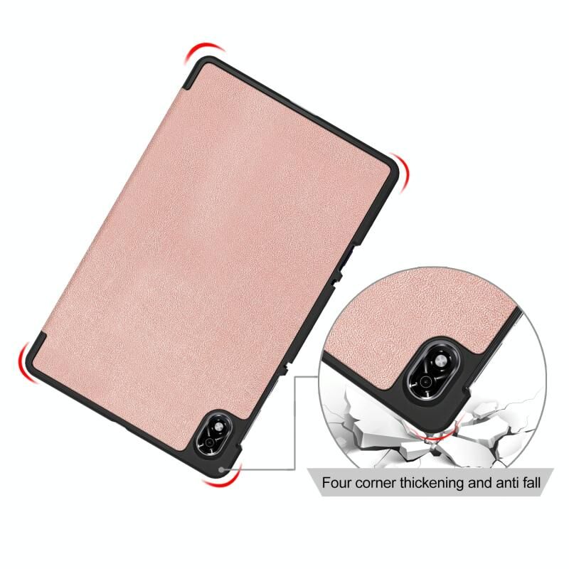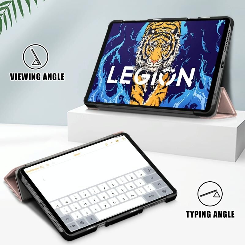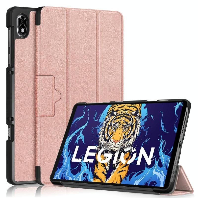 Για Lenovo Legion Y700 3-πτυσσόμενα μαγνητική πόρπη Custer Υφή δέρμα Smart Tablet υπόθεση (Rose Gold)