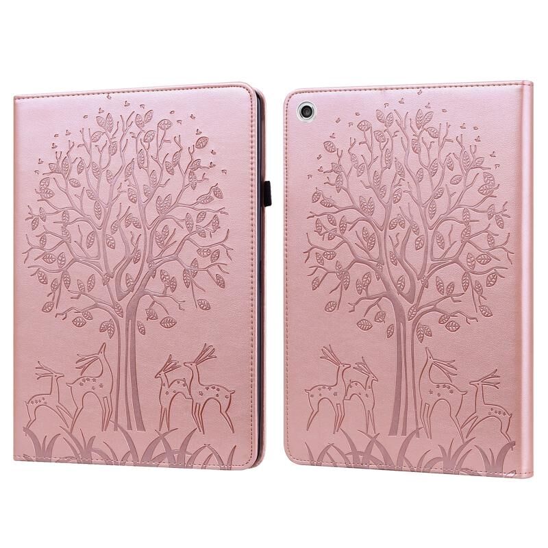 Για Lenovo M10 Plus 3rd Gen 10.6 ιντσών δέντρο & ελάφι ανάγλυφη δερμάτινη θήκη tablet (ροζ)