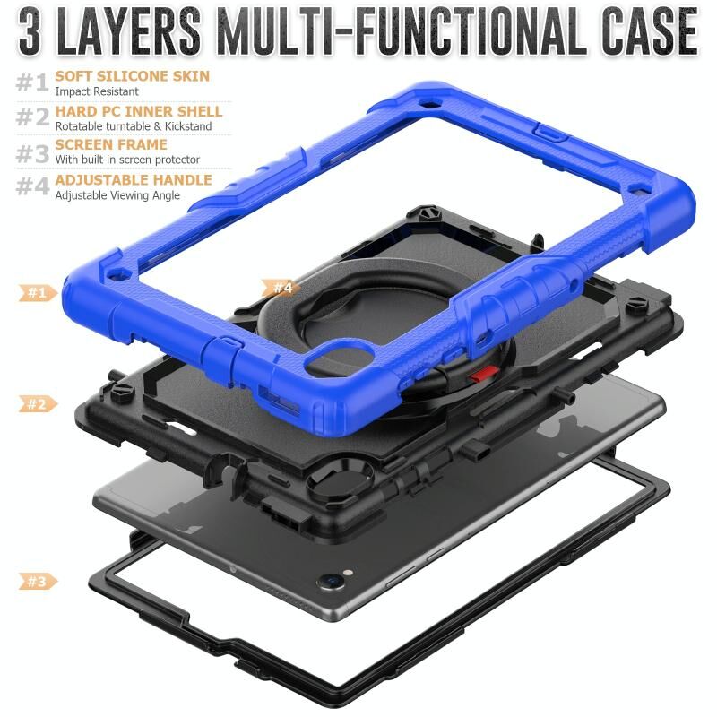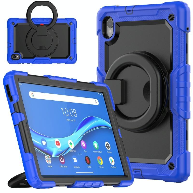 For Lenovo M10 Plus X606F Silicone + PC Holder Tablet Case(Blue+Black)