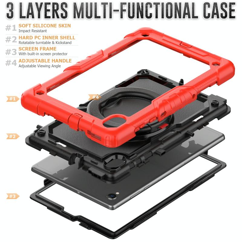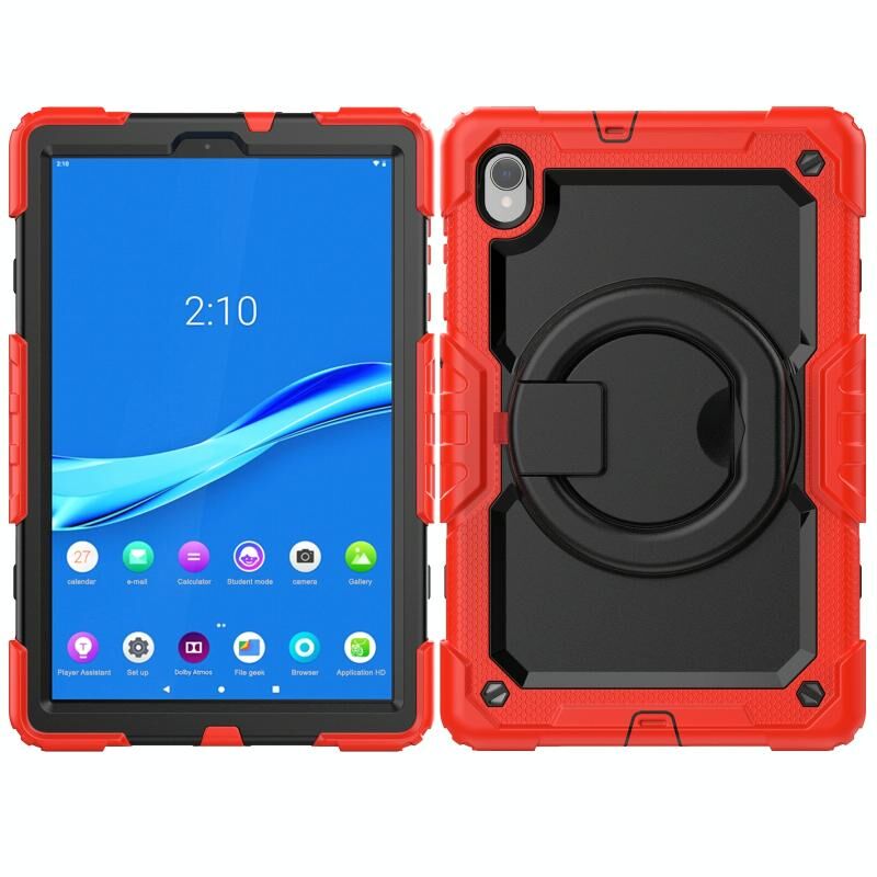 For Lenovo M10 Plus X606F Silicone + PC Holder Tablet Case(Red+Black)