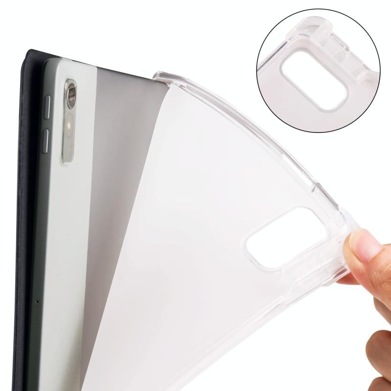 Για Lenovo Pad Plus 2023 11.5 ιντσών 3 φορές Clear TPU Δερμάτινη θήκη tablet με υποδοχή για στυλό (μαύρο)