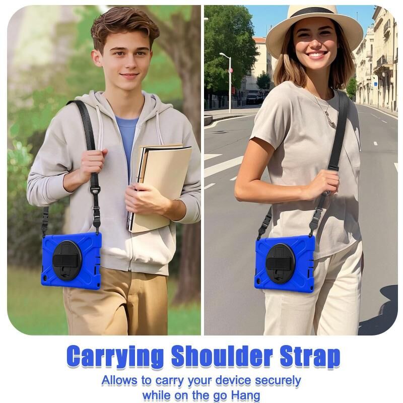 6. Detachable Shoulder Strap: The adjustable hand strap provides easy and comfortable grip, a must-have feature when you are presenting your tablet to others. The detachable and adjustable shoulder strap can help you carry your tablet more safely while hiking, traveling and other outdoor activities. This can also be used to secure your tablet to the car seat.