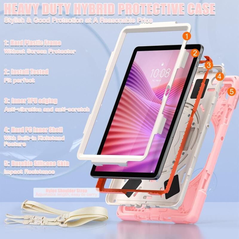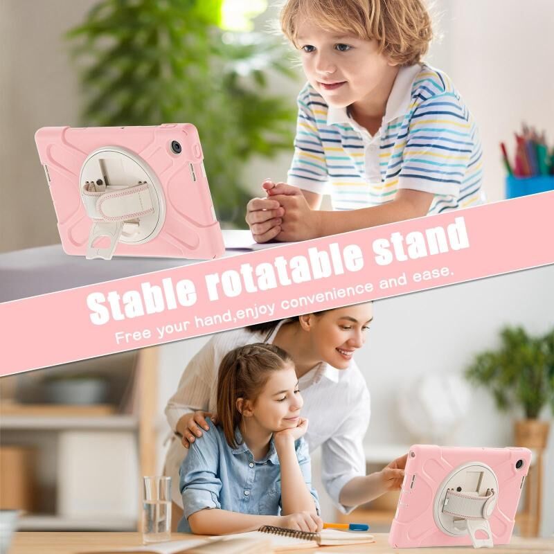 6. Detachable Shoulder Strap: The adjustable hand strap provides easy and comfortable grip, a must-have feature when you are presenting your tablet to others. The detachable and adjustable shoulder strap can help you carry your tablet more safely while hiking, traveling and other outdoor activities. This can also be used to secure your tablet to the car seat.