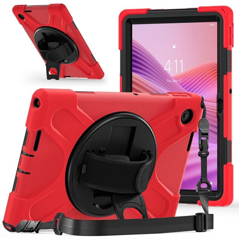 For Lenovo Tab 10.1 2025 / ZhaoYang K10c Rotatable Holder Silicone Hybrid PC Tablet Case with Shoulder Strap(Red)