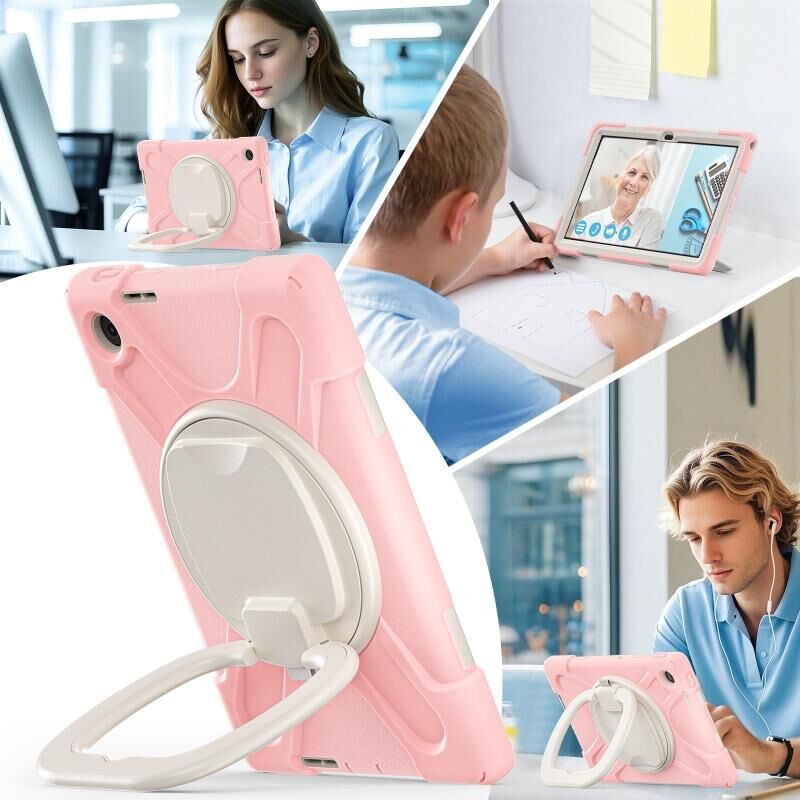 For Lenovo Tab 10.1 2025 / ZhaoYang K10c Silicone Hybrid PC Tablet Case with Holder & Shoulder Strap(Pink)