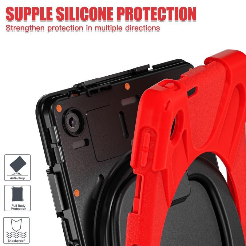 For Lenovo Tab 10.1 2025 / ZhaoYang K10c Silicone Hybrid PC Tablet Case with Holder & Shoulder Strap(Red)