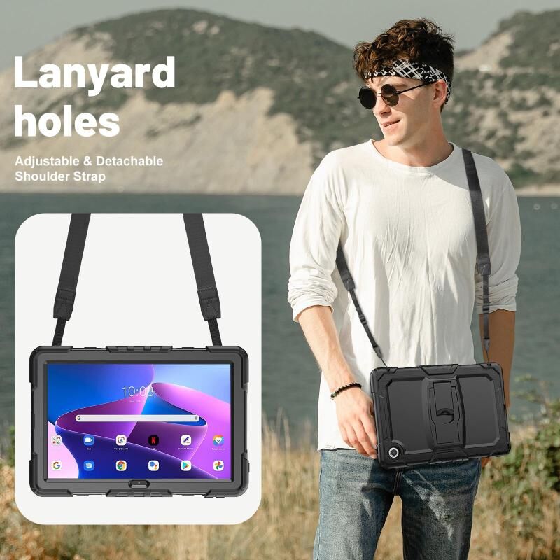 6. Shoulder Strap: Shoulder grip can be slanted and release your hands completely. This function is perfect for traveling, restaurant ordering, home product introduction, engineer outdoor operation, teacher, etc. Also, the strap allows you to hang up your tablet behind car seat for entertainment for kids.