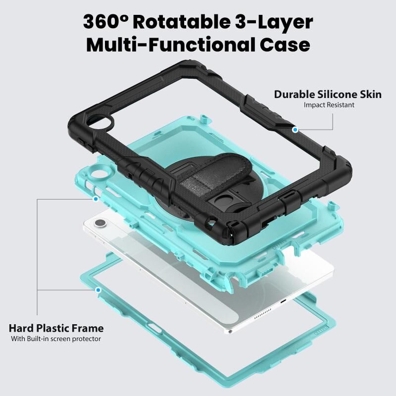 5. Shoulder Strap: Shoulder grip can be slanted and release your hands completely. This function is perfect for traveling, restaurant ordering, home product introduction, engineer outdoor operation, teacher, etc. Also, the strap allows you to hang up your tablet behind car seat for entertainment for kids.