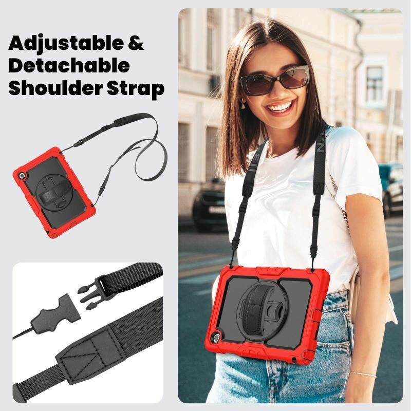 5. Shoulder Strap: Shoulder grip can be slanted and release your hands completely. This function is perfect for traveling, restaurant ordering, home product introduction, engineer outdoor operation, teacher, etc. Also, the strap allows you to hang up your tablet behind car seat for entertainment for kids.