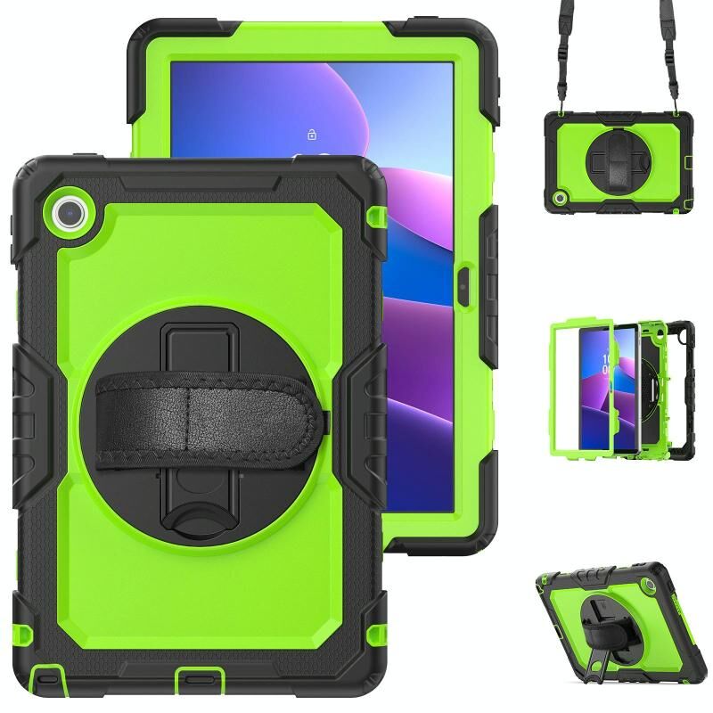 For Lenovo Tab 10.1 / ZhaoYang K10c Silicone Hybrid PC Tablet Case with Shoulder Strap(Yellow Green PC)