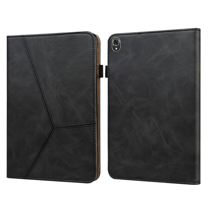 Για Lenovo Tab K10 / M10 Plus / M10 FHD Plus Αμιγές χρώμα ανάγλυφη ριγέ δερμάτινη θήκη (μαύρο)