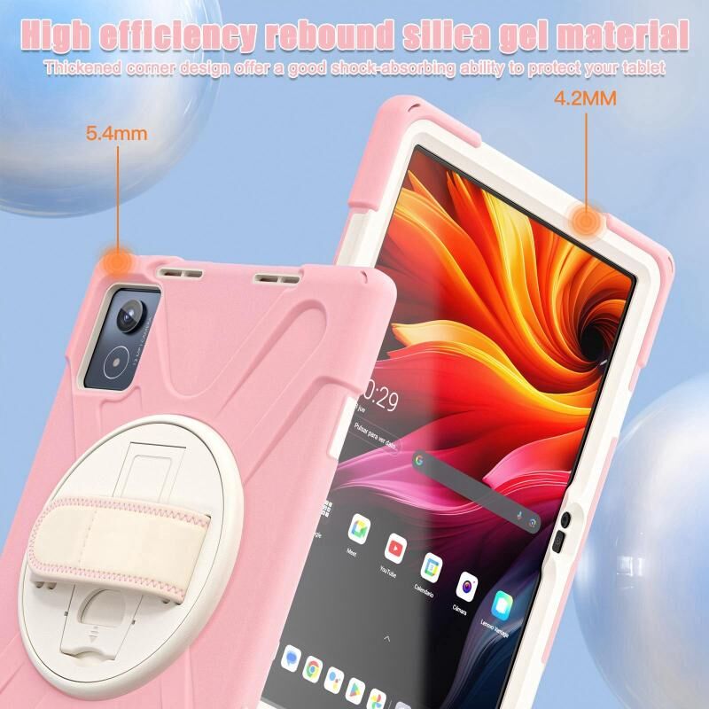 For Lenovo Tab K11 Plus Rotatable Holder Silicone Hybrid PC Tablet Case with Shoulder Strap(Pink)