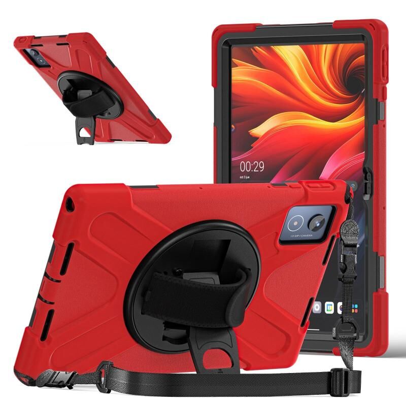 For Lenovo Tab K11 Plus Rotatable Holder Silicone Hybrid PC Tablet Case with Shoulder Strap(Red)