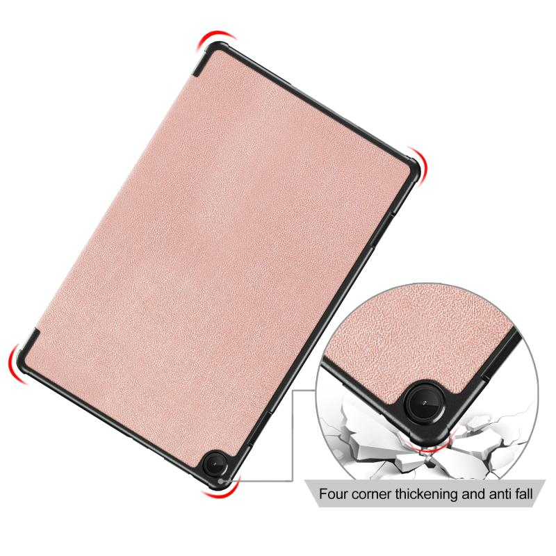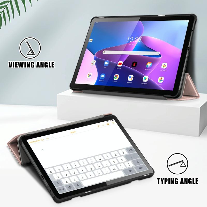 For Lenovo Tab M10 10.1 3rd Gen 3-folding Magnetic Buckle Custer Texture Leather Smart Tablet Case(Rose Gold)