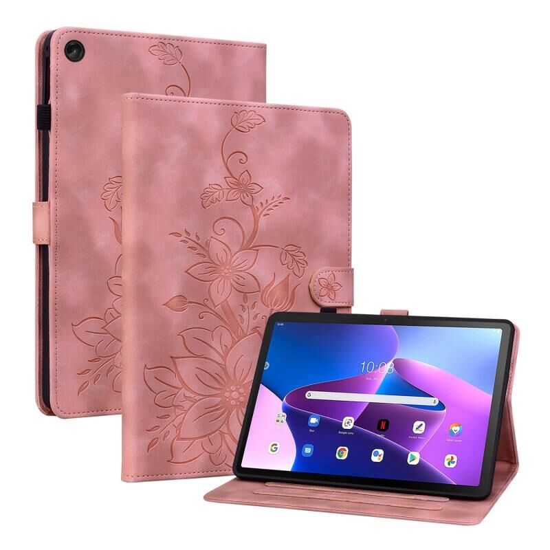 Για Lenovo Tab M10 10.1 3rd Gen Lily ανάγλυφη δερμάτινη θήκη tablet (ροζ)