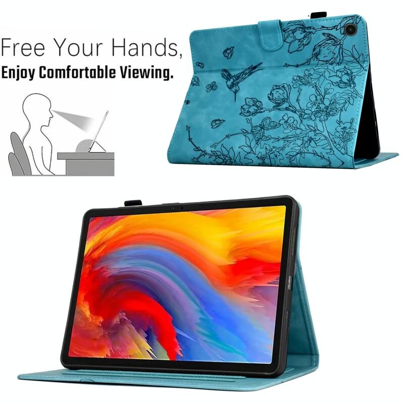 Θήκη για Lenovo Tab M10 3ης Γενιάς με ανάγλυφα σχέδια λουλουδιών και πουλιών, από έξυπνο δέρμα (Καφέ)