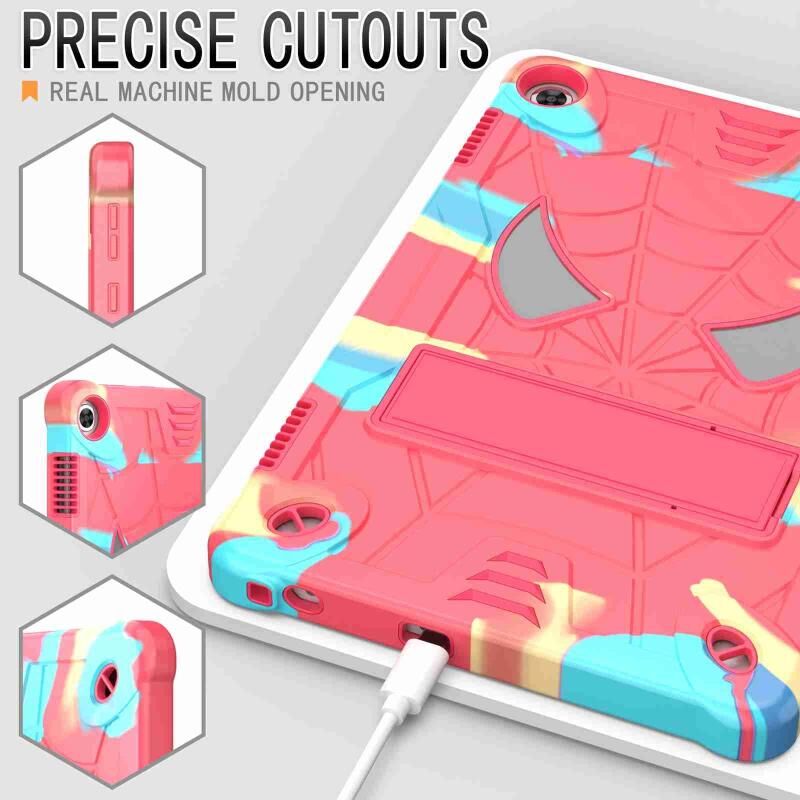 For Lenovo Tab M10 3rd Gen Spider Texture Silicone Hybrid PC Tablet Case with Shoulder Strap(Camouflage + Rose Red)