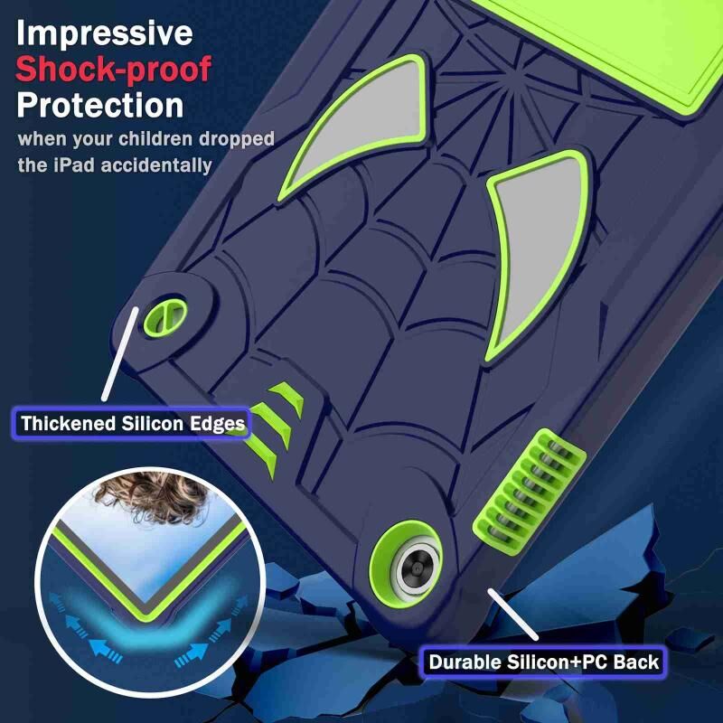 For Lenovo Tab M10 3rd Gen Spider Texture Silicone Hybrid PC Tablet Case with Shoulder Strap(Navy Blue + Yellow Green)