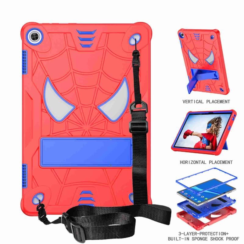 For Lenovo Tab M10 3rd Gen Spider Texture Silicone Hybrid PC Tablet Case with Shoulder Strap(Red + Blue)
