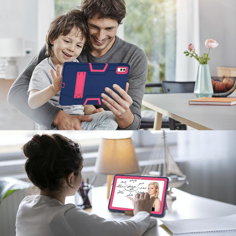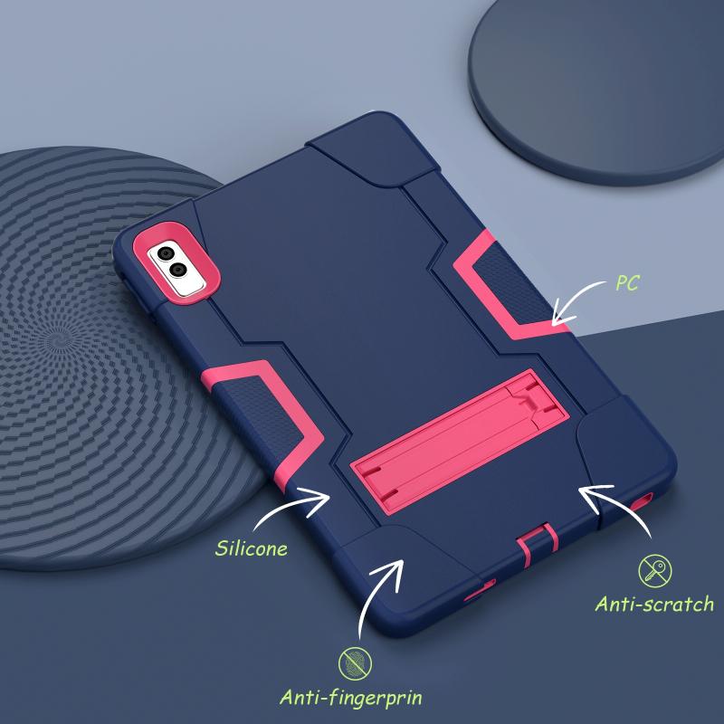 For Lenovo Tab M10 5G 10.6 inch Contrast Color Silicone PC Tablete Case with Holder(Navy Blue + Rose Red)