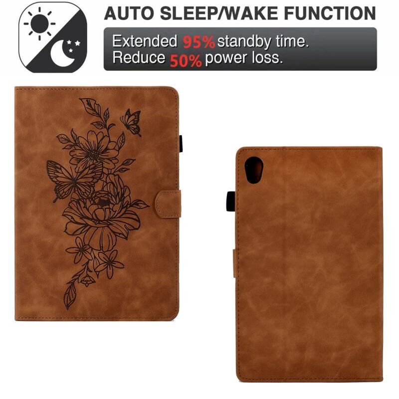 Θήκη Smart Tablet από Δέρμα με ανάγλυφο σχέδιο Πεονίας και Πεταλούδας για Lenovo Tab M10 Gen 2 (Καφέ)