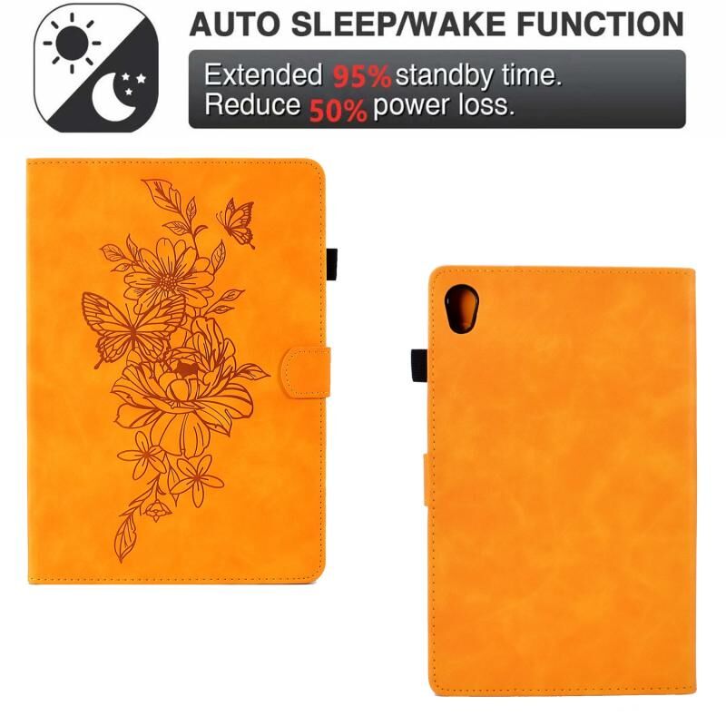 Θήκη Smart Tablet από Δέρμα με ανάγλυφο σχέδιο Πεονίας και Πεταλούδας για Lenovo Tab M10 Gen 2 (Καφέ)
