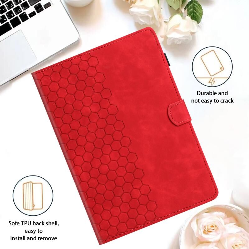 Για Lenovo Tab M10 Gen 3rd Honeycomb ανάγλυφη δερμάτινη θήκη για έξυπνο tablet (κόκκινο)