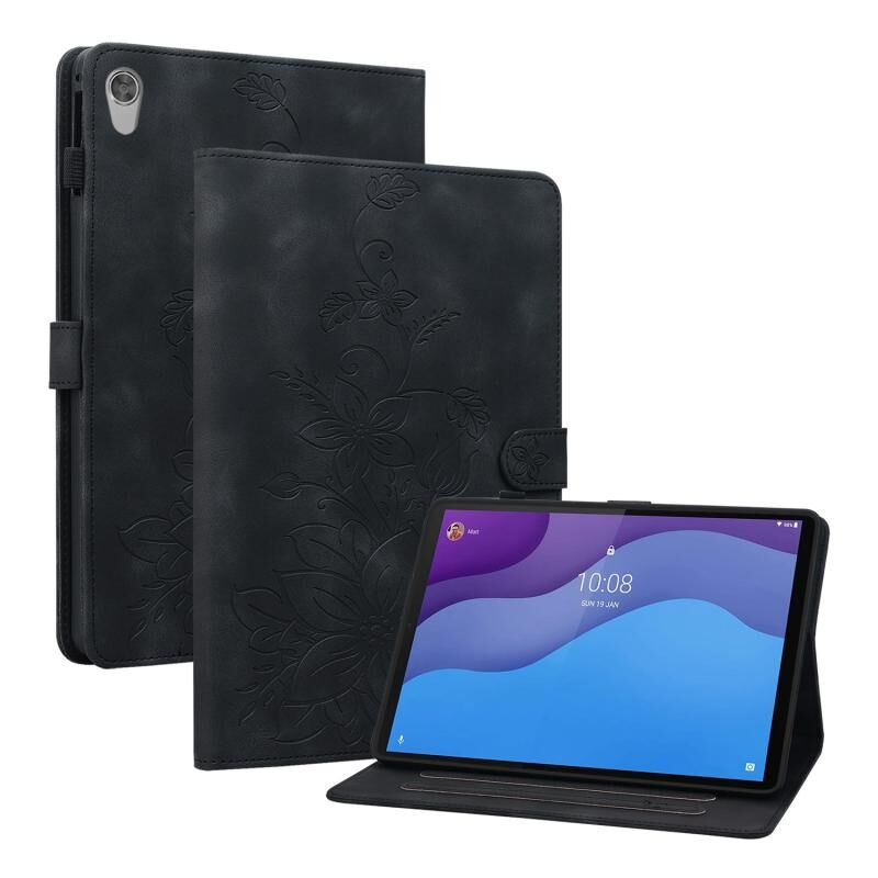 Για Lenovo Tab M10 HD Gen2 Lily ανάγλυφη δερμάτινη θήκη tablet (μαύρο)