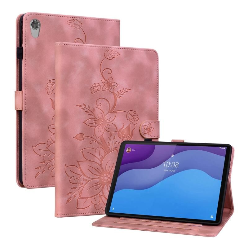 Για Lenovo Tab M10 HD Gen2 Lily ανάγλυφη δερμάτινη θήκη tablet (ροζ)