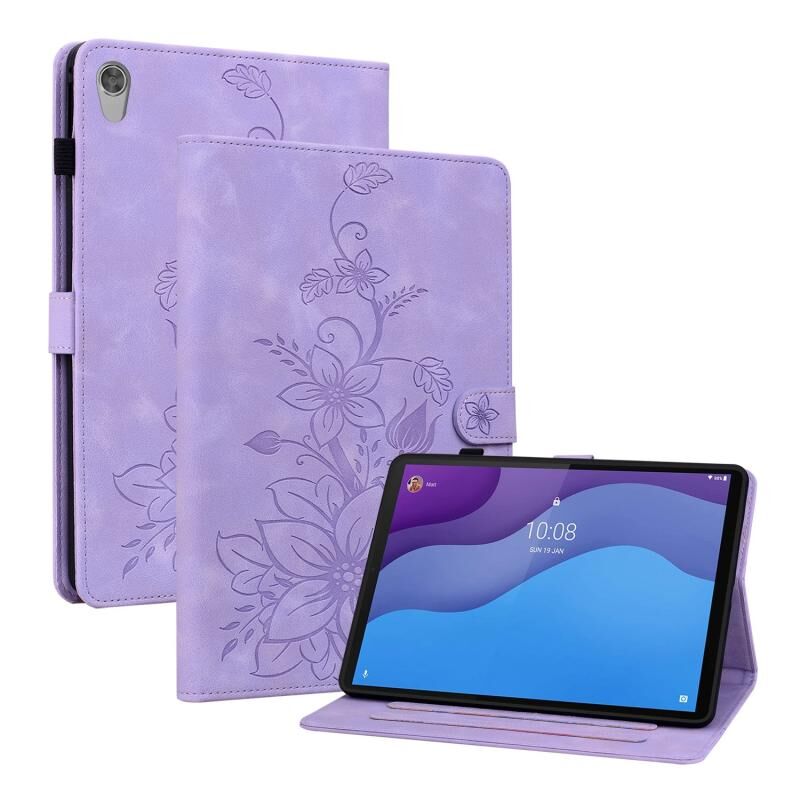 Για Lenovo Tab M10 HD Gen2 Lily ανάγλυφη δερμάτινη θήκη tablet (μωβ)
