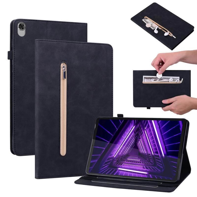 Για Lenovo Tab M10 Plus 10.3 δέρμα αίσθηση στερεό χρώμα φερμουάρ δερμάτινη θήκη tablet (μαύρο)