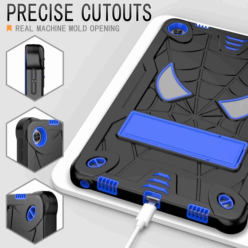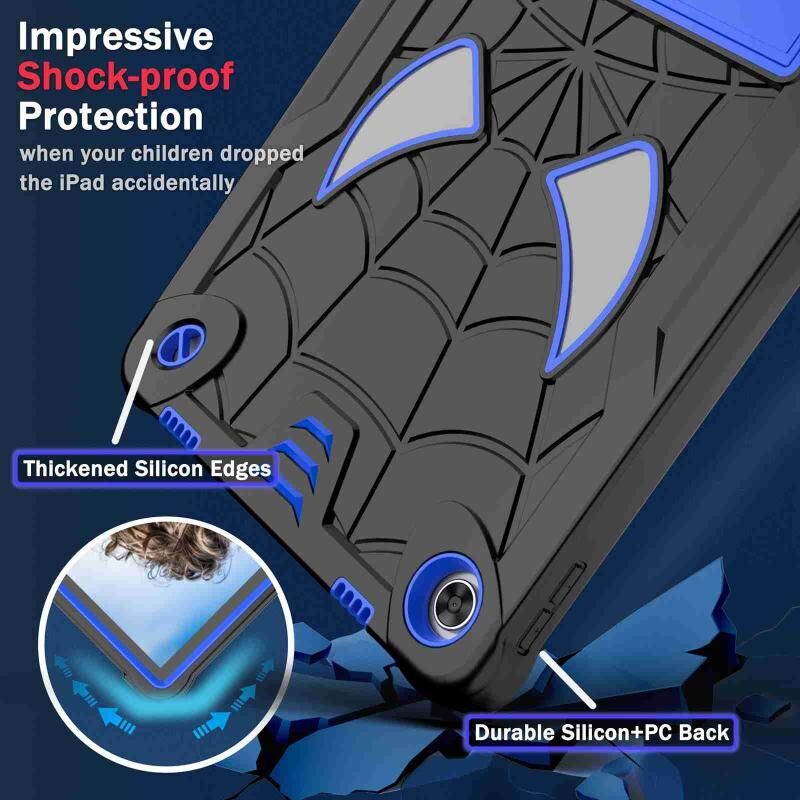 For Lenovo Tab M10 Plus 10.6 3rd Gen 2022 Spider Texture Silicone Hybrid PC Tablet Case with Shoulder Strap(Black + Blue)